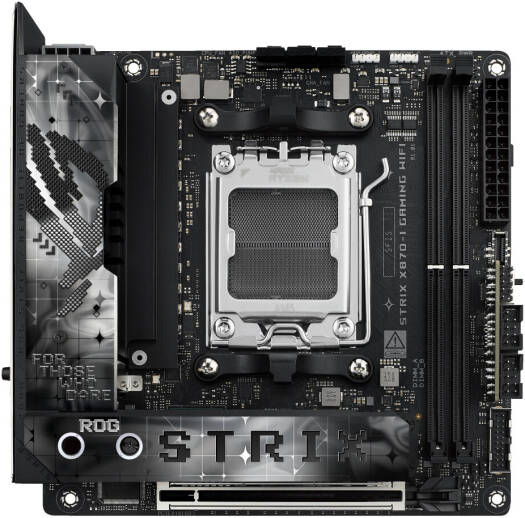 The ROG Strix X870-I Gaming Wi-Fi packs advanced performance into a compact mini-ITX design, powered by the ROG Strix Hive II for simplified control and tuning. It includes PCIe 5.0 support for graphics and storage, dual DDR5 slots supporting up to 96GB, and strong power delivery for smooth gaming and demanding workloads. Efficient cooling ensures stable performance, while Wi-Fi 7 and Bluetooth 5.4 provide ultra-fast wireless connectivity. This motherboard delivers the speed, power, and versatility required for modern AI-focused and high-performance PC builds.